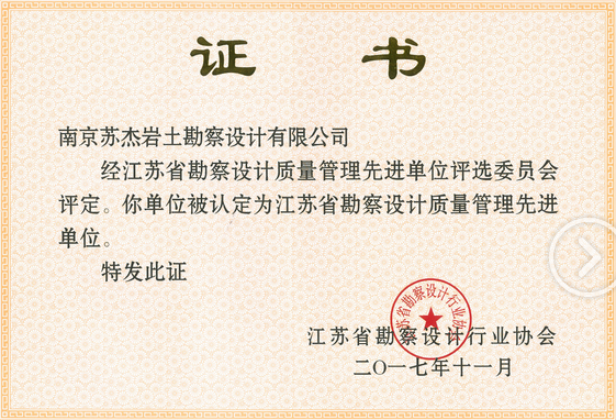 江蘇省勘察設(shè)計(jì)質(zhì)量先進(jìn)單位